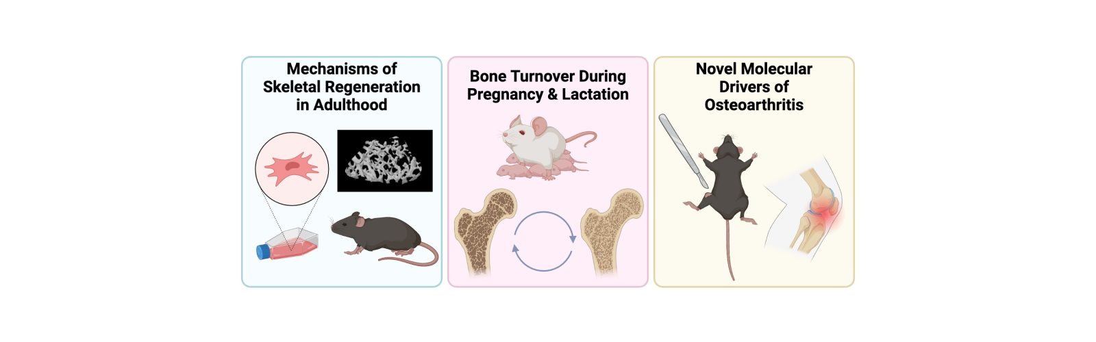 3) Finally, we utilize transgenic mice to study natural life events where there is extensive bone turnover and/or cartilage loss, such as pregnancy and lactation, menopause, or aging.